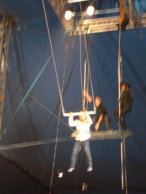 到着し準備完了!!空中ブランコ、スタート!!