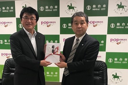 仙台市役所を訪れて、伊藤敬幹副市長に東日本大震災で被災された方々を