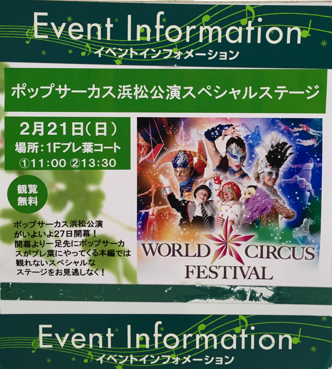 そこで、明日(2月21日)サーカス会場である、プレ葉ウォーク浜北で、