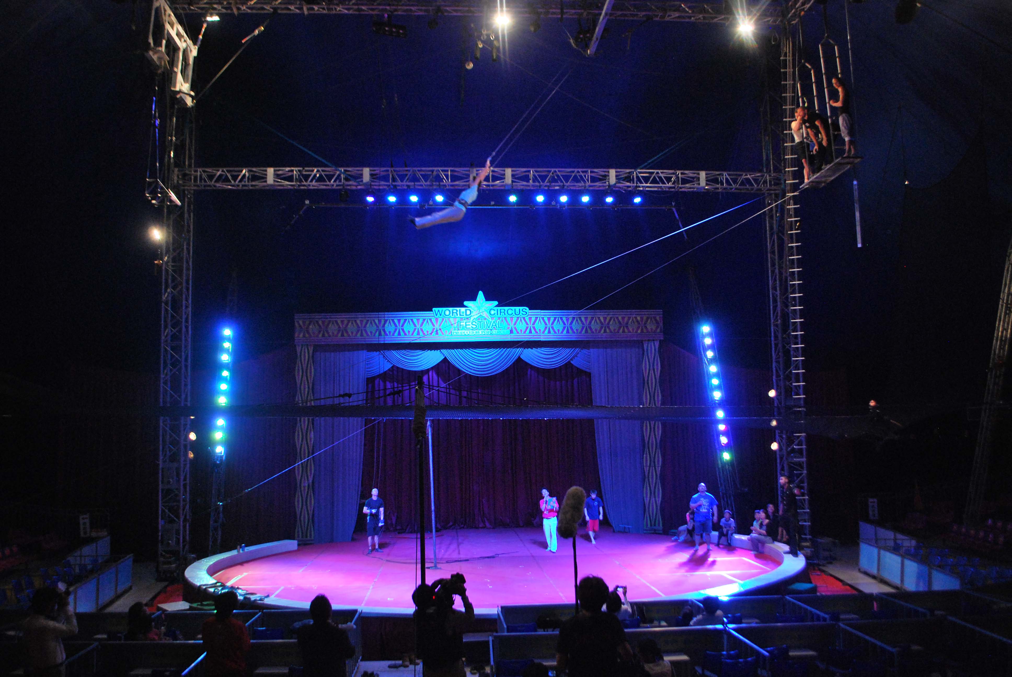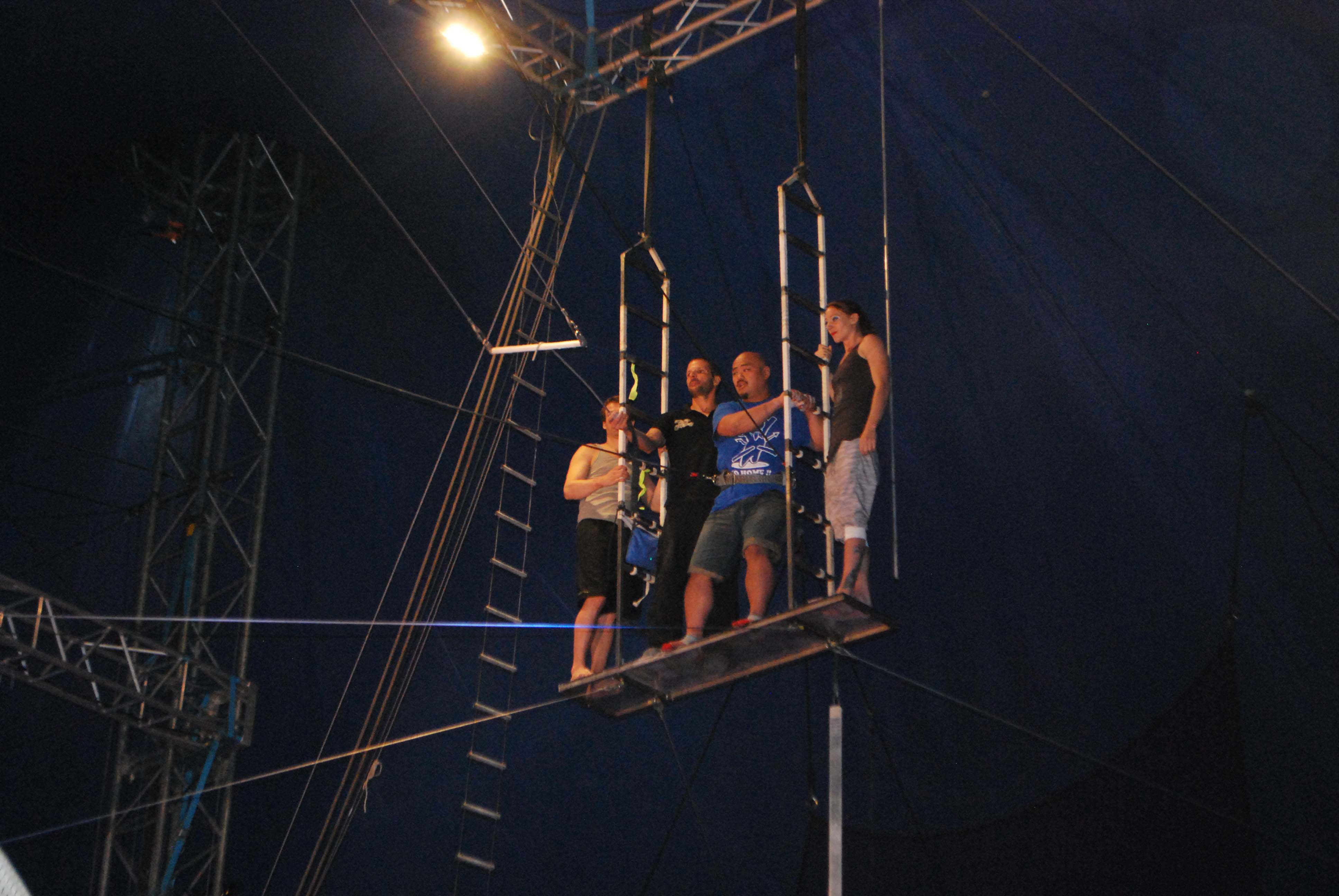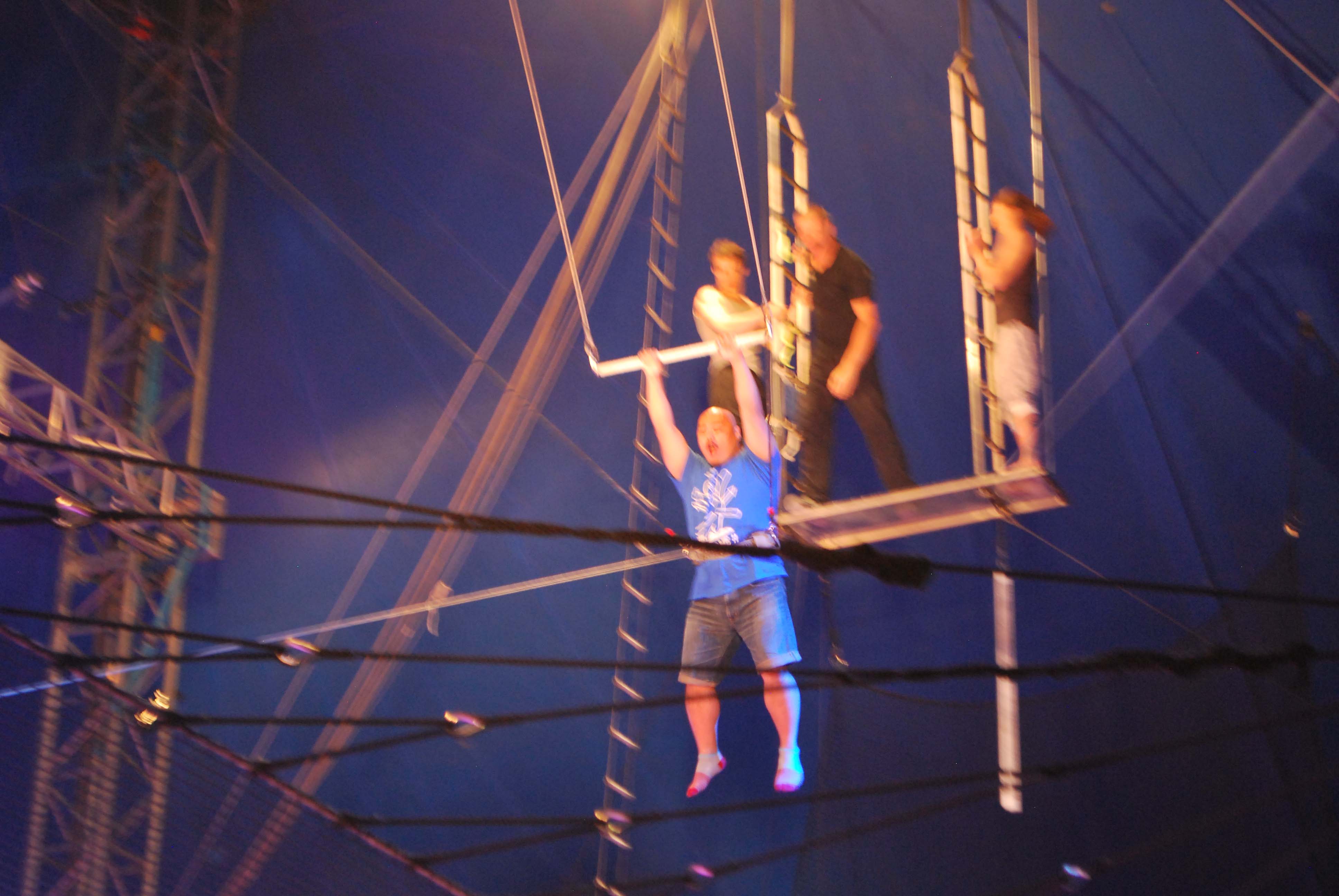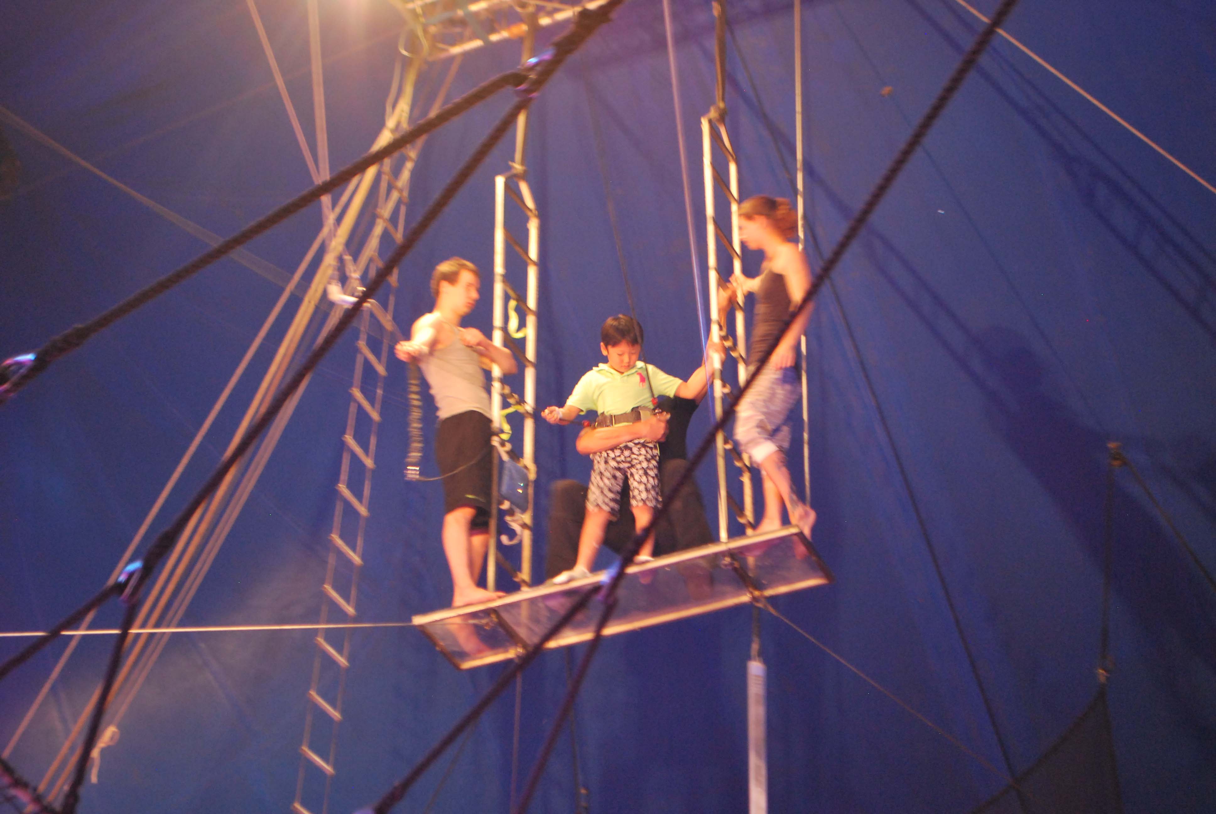 昨日は公演終了後にサーカスの華、空中ブランコに一般の親子がチャレンジしました。