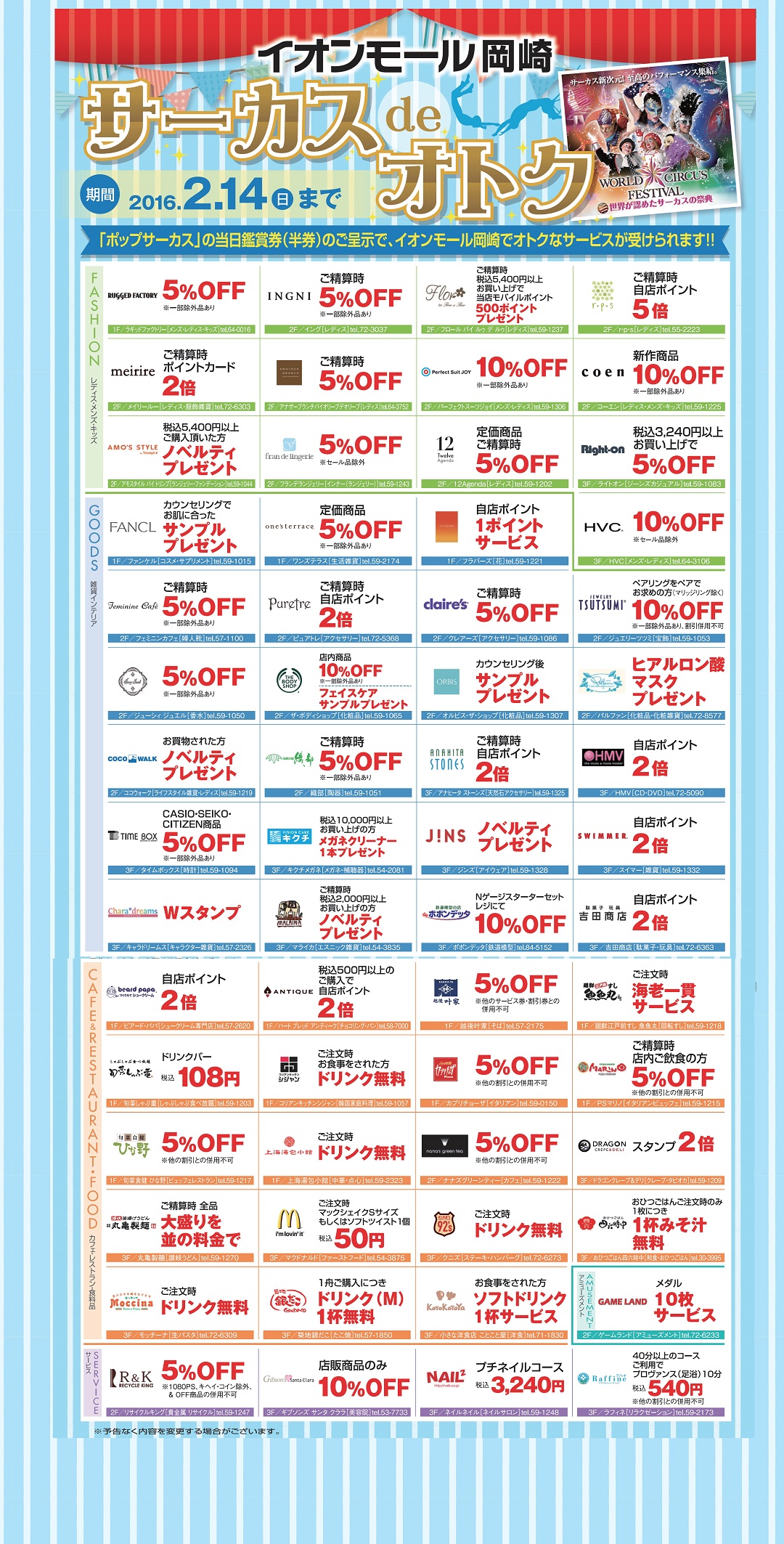 イオンモール岡崎さんにサーカスの半券を持って行くと対象のお店で