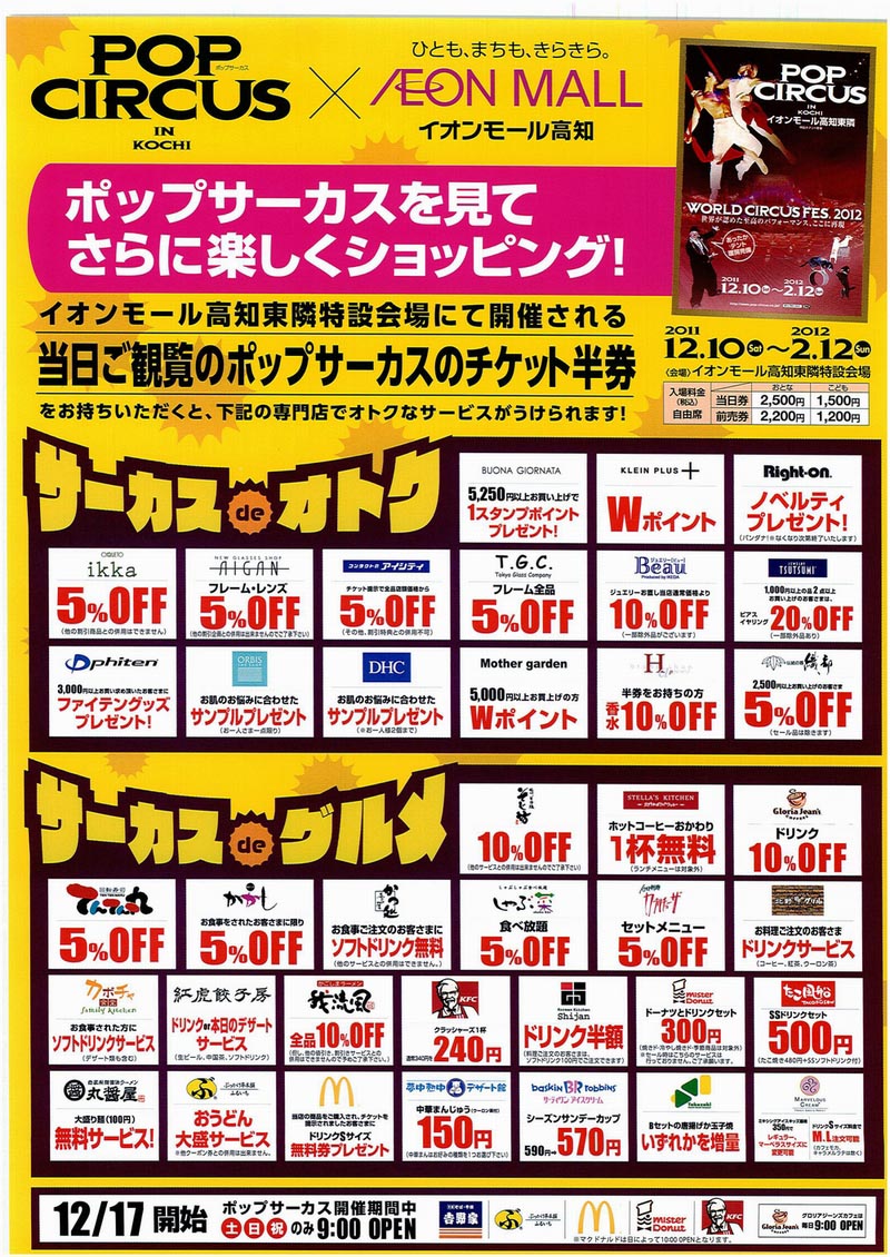 イオンモール高知さんでお食事してサーカスに来てもよし
