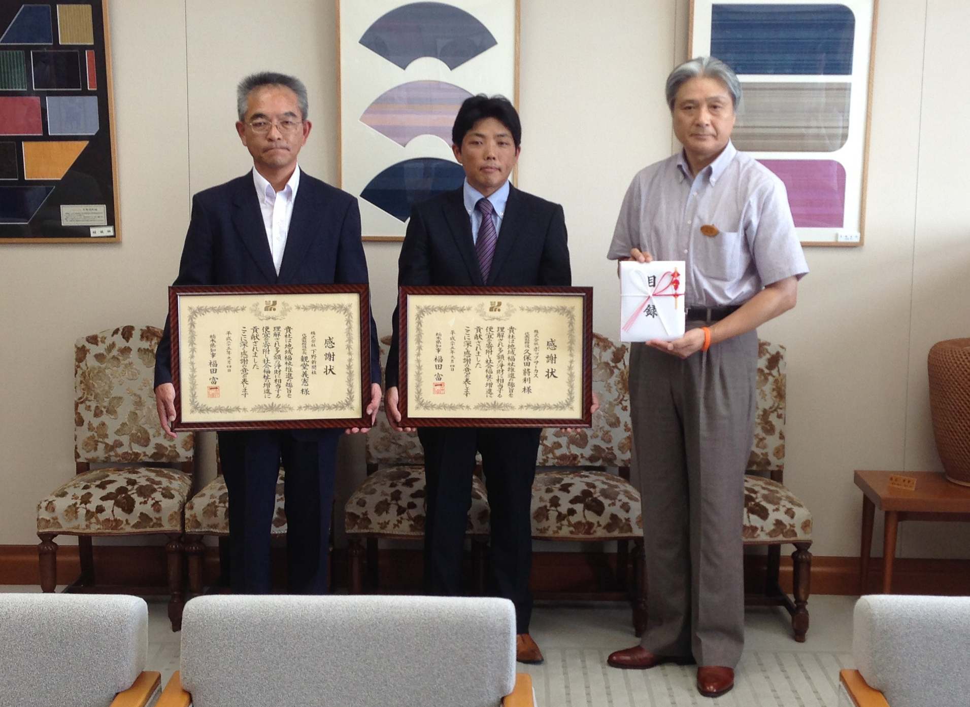 福田 富一 知事より、感謝状を頂戴しました。