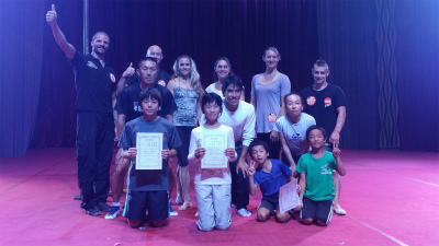最後に先生となってくれた空中ブランコのメンバーと記念撮影。