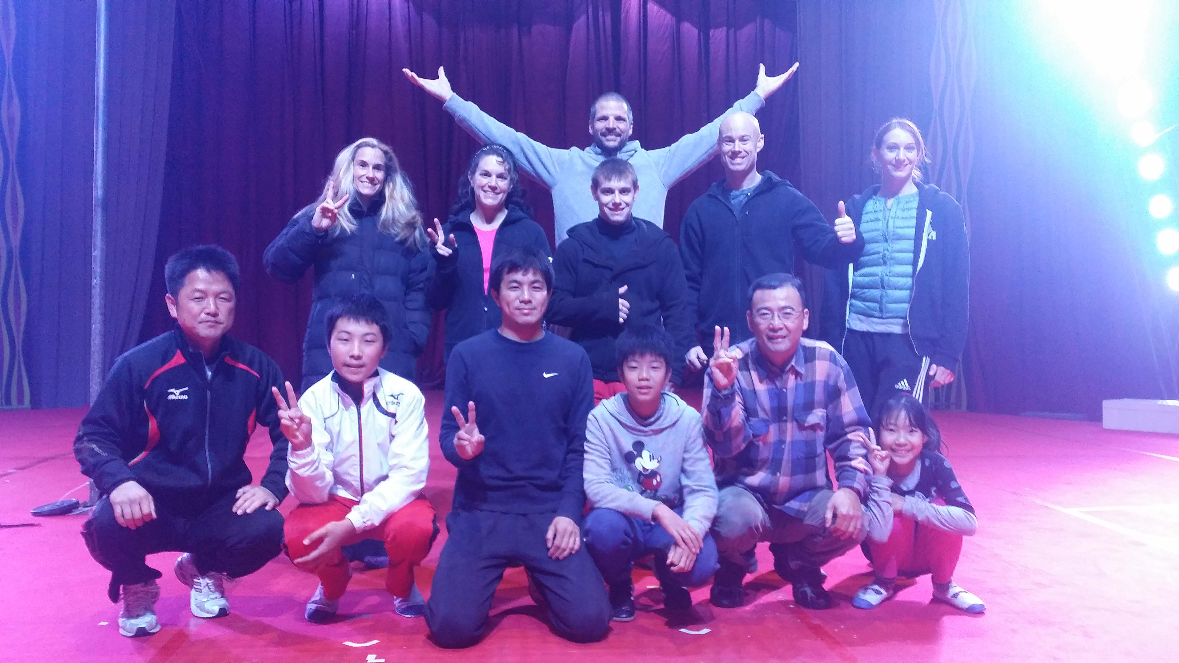 3回目の公演を鑑賞した後、空中ブランコの演技を終えたばかりのアーティスト達の