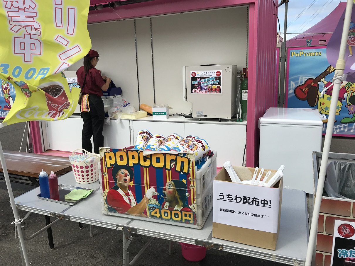 毎日、暑いですね。ただいま入場待ちのお客様向けに入り口横に臨時の売店がオープンして、